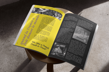 Magazine au format 210 par 297mm plié puis au format 297mm par 420mm une fois déplié