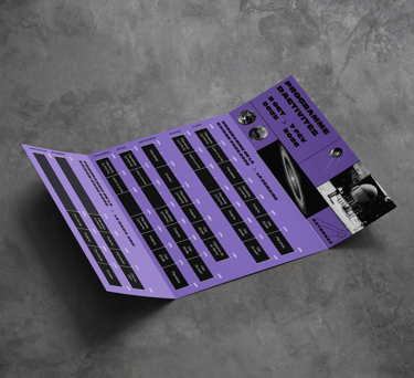 Création d'une affiche de campagne à destination du print, d'un dépliant regroupant toute la programmation et d'un nouveau logo.