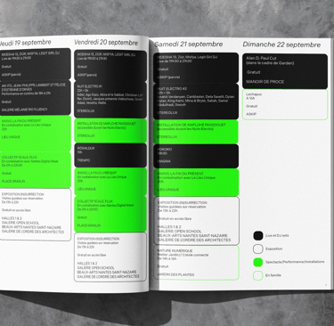Magazine pour le festival de cultures électroniques et d’arts numériques SCOPITONE afin de présenter sa programmation.