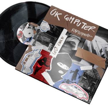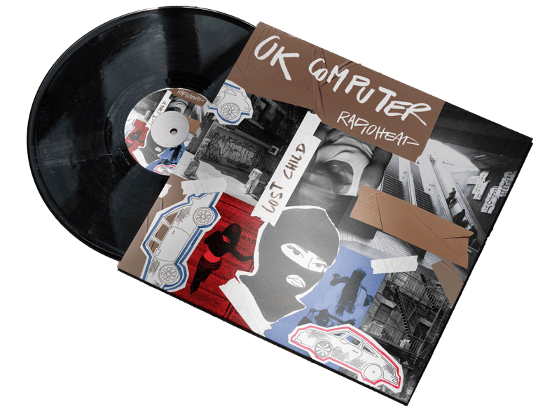 Création d’une pochette de vinyle d’un album existant et sorti dans les années 2010 ou avant et ce dans une esthétique plus contemporaine ; ici Ok Computer de Radiohead
