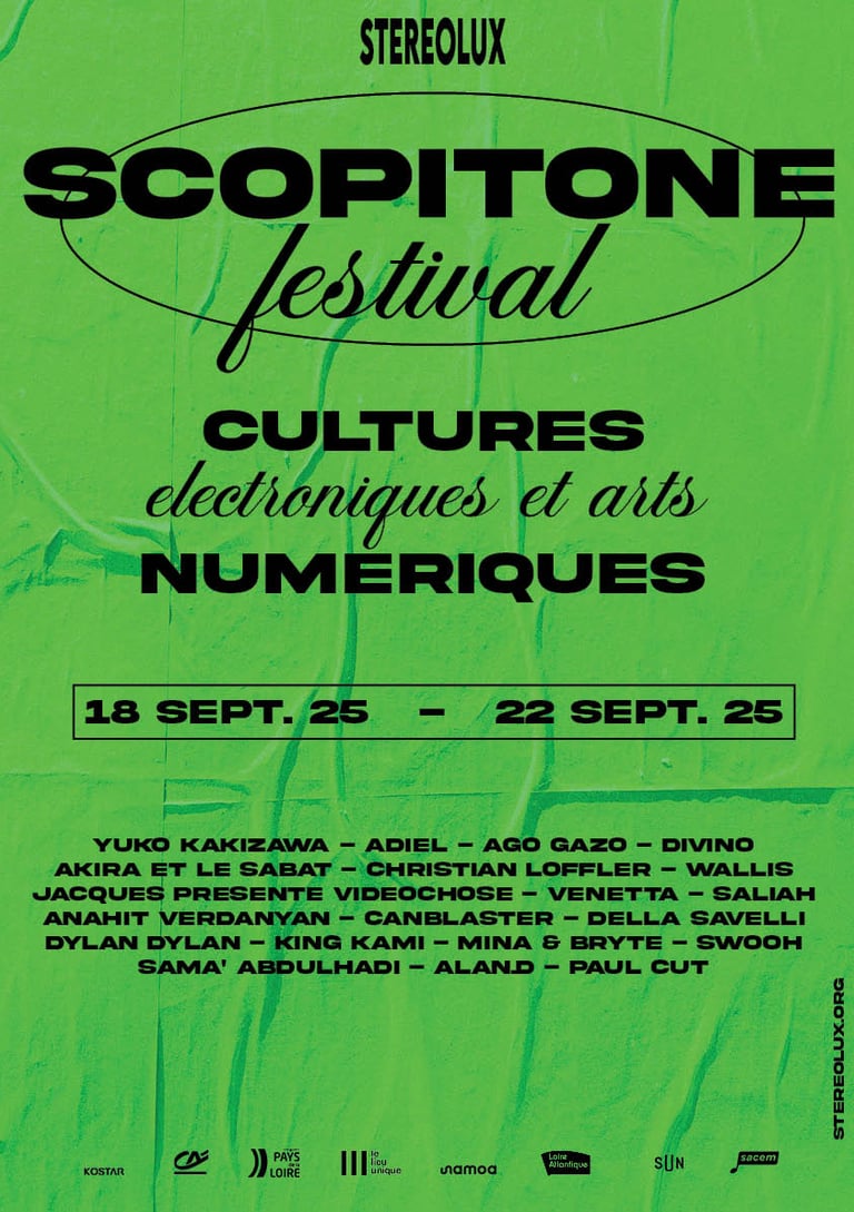 Création d'une affiche pour l'édition 2025 de Scopitone, un festival de cultures électroniques et d'arts numériques.