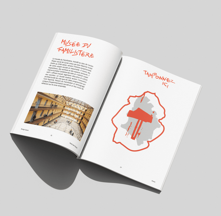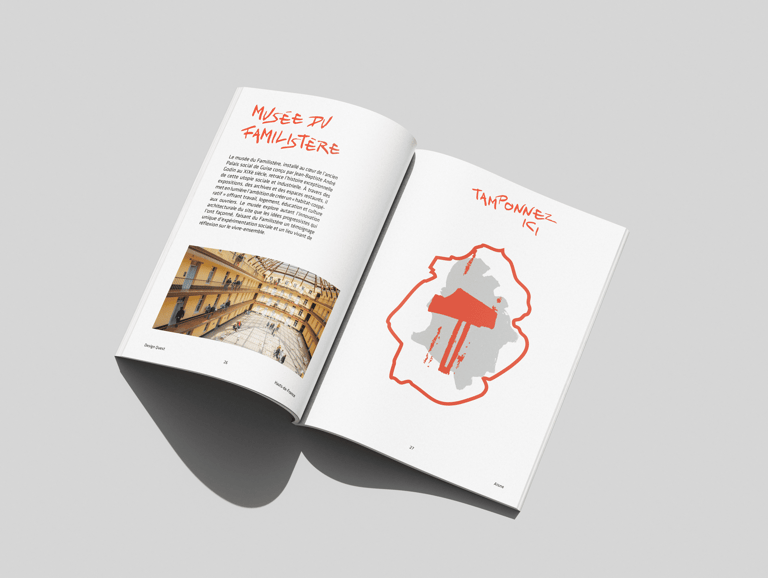 Livrables : logo, carnet présentant les lieux de la région en question et prêt à accueillir les tampons, les visuels de 3 des 30 tampons et une affiche type in situ.